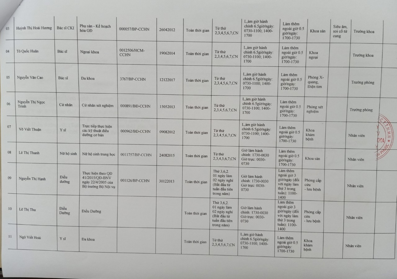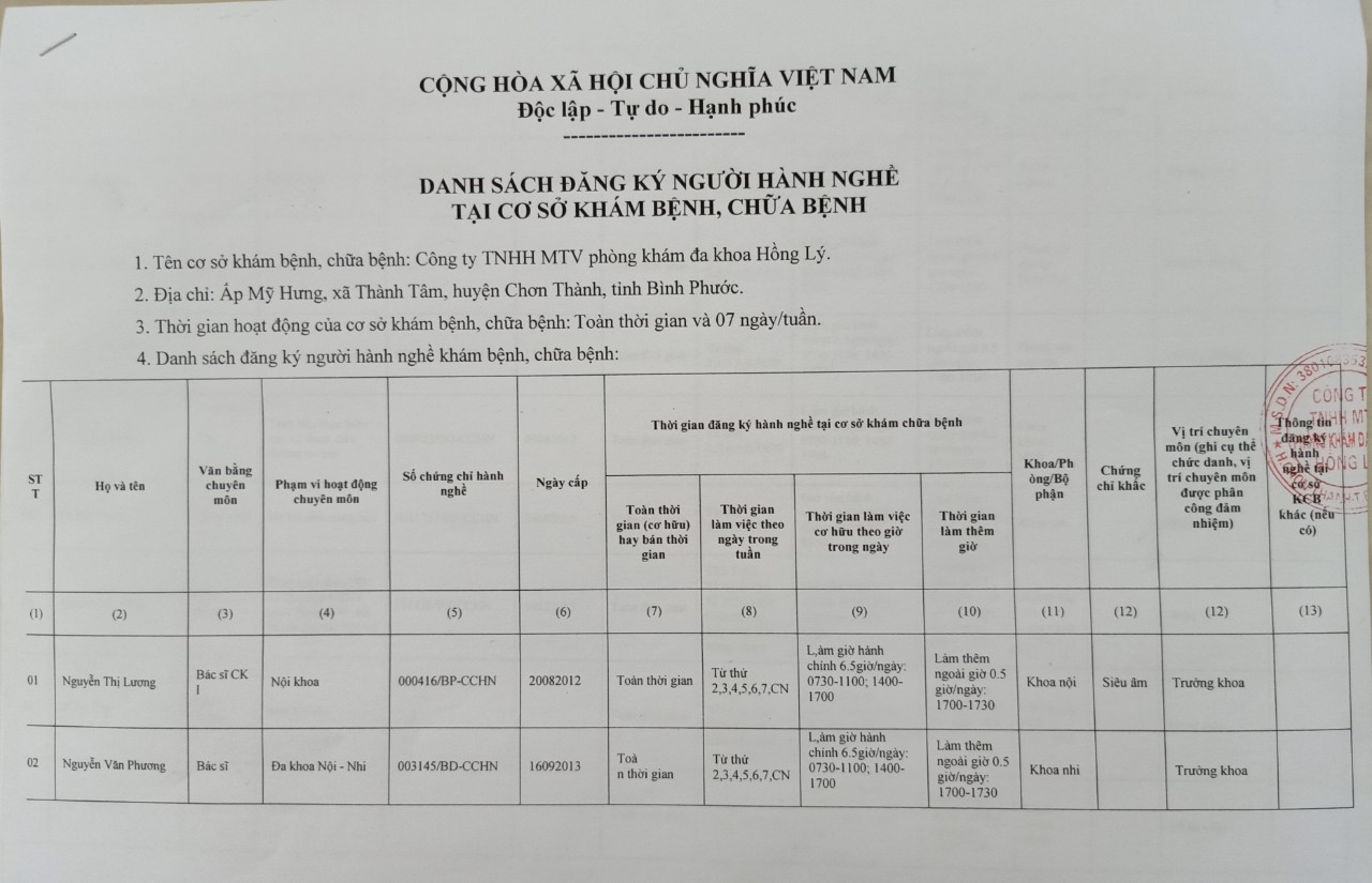 Danh sách nhân sự PKĐK Hồng Lý