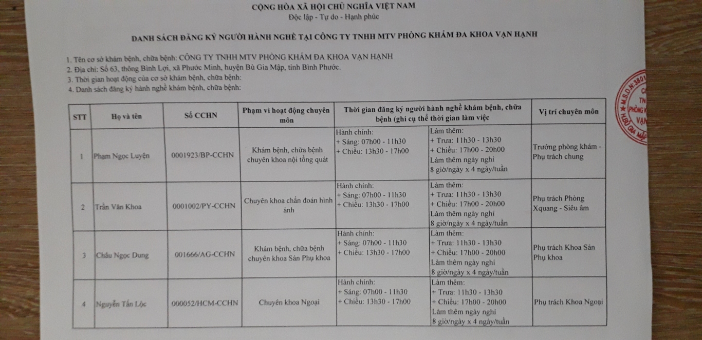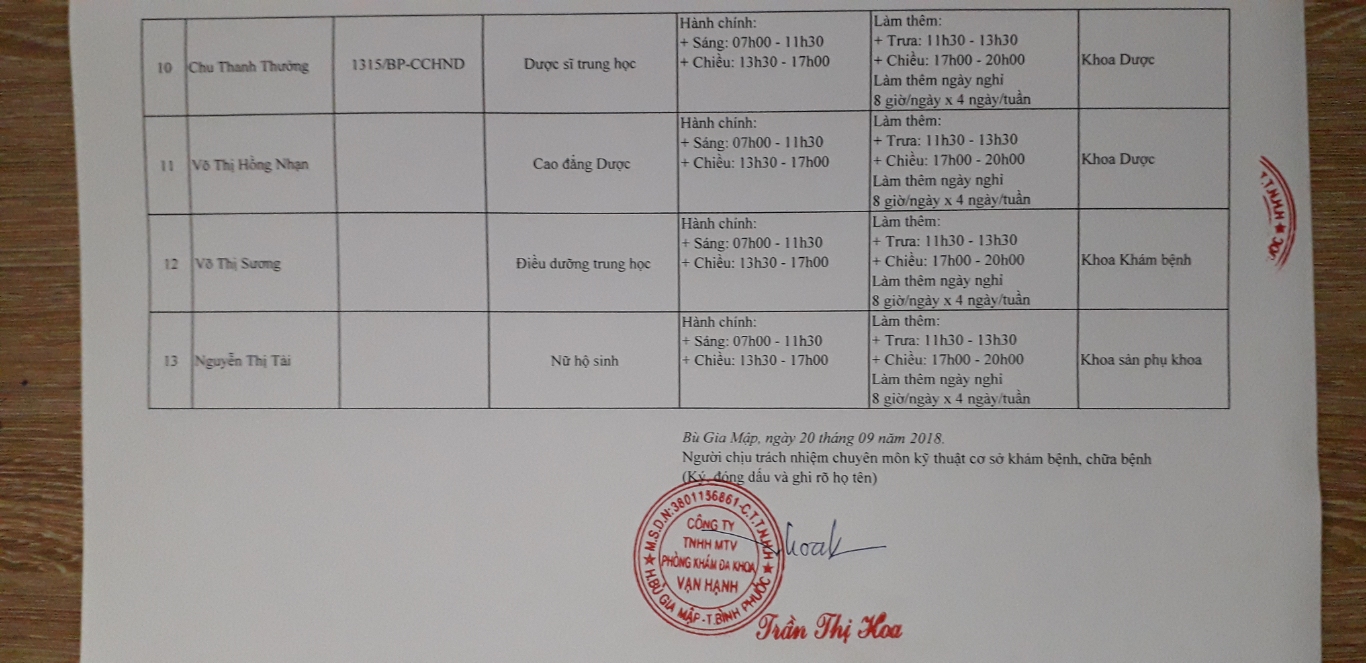 DANH SÁCH NHÂN SỰ PKĐK VẠN HẠNH (Cập nhật ngày 30/11/2018)