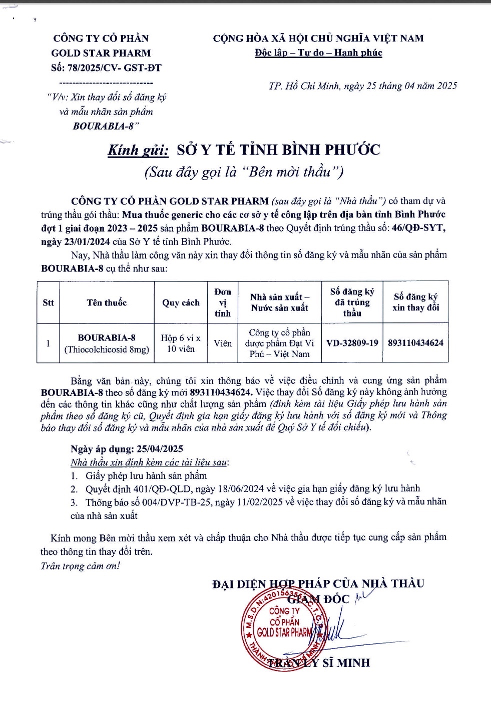Căn cứ Quyết định số 46/QĐ-SYT ngày 23 tháng 01 năm 2024 của Sở Y tế về việc phê duyệt kết quả lựa chọn nhà thầu mua thuốc generic cho các cơ sơ y tế công lập trên địa bàn tỉnh Bình Phước đợt 1 giai đoạn 2023 – 2025.